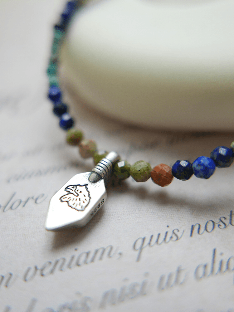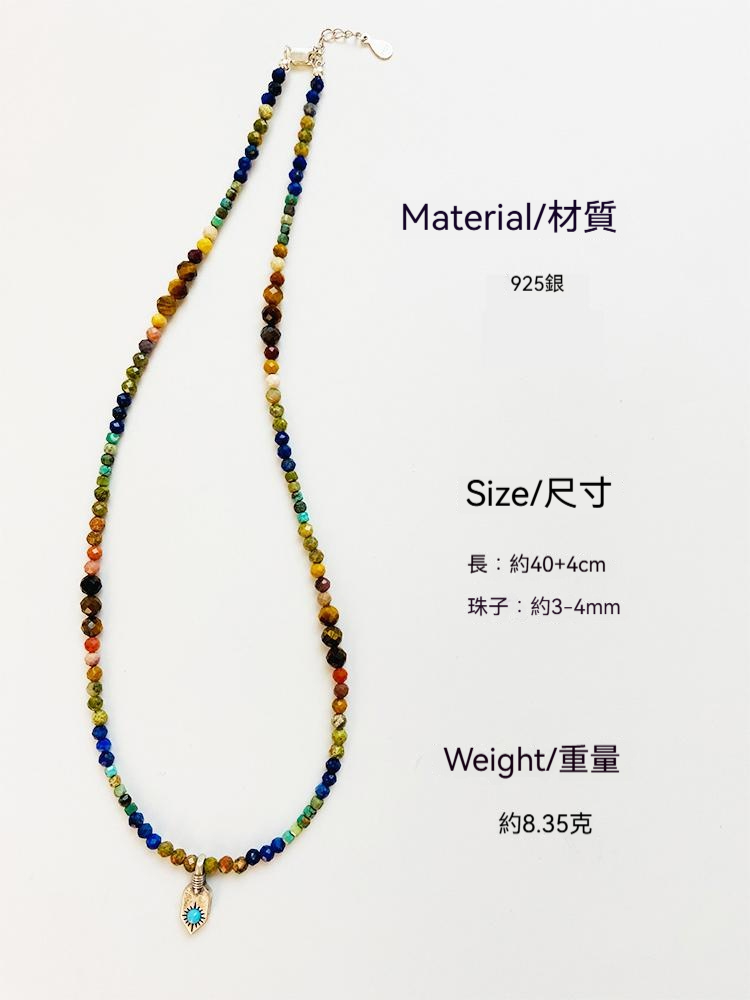 {{ order.time }}【訂購了】復古文藝綠松石925銀吊墜|天然彩色寶石串珠項鍊|撞色百搭手工鎖骨鍊