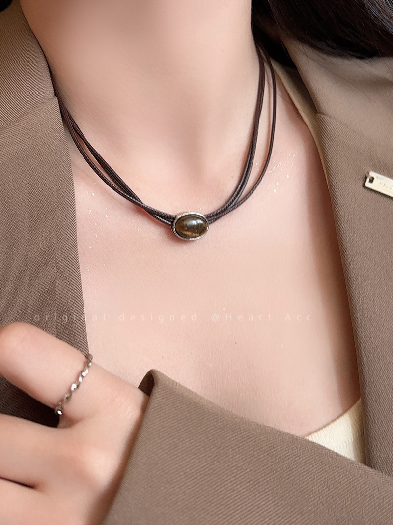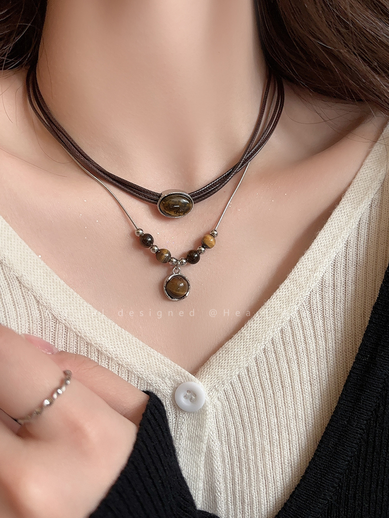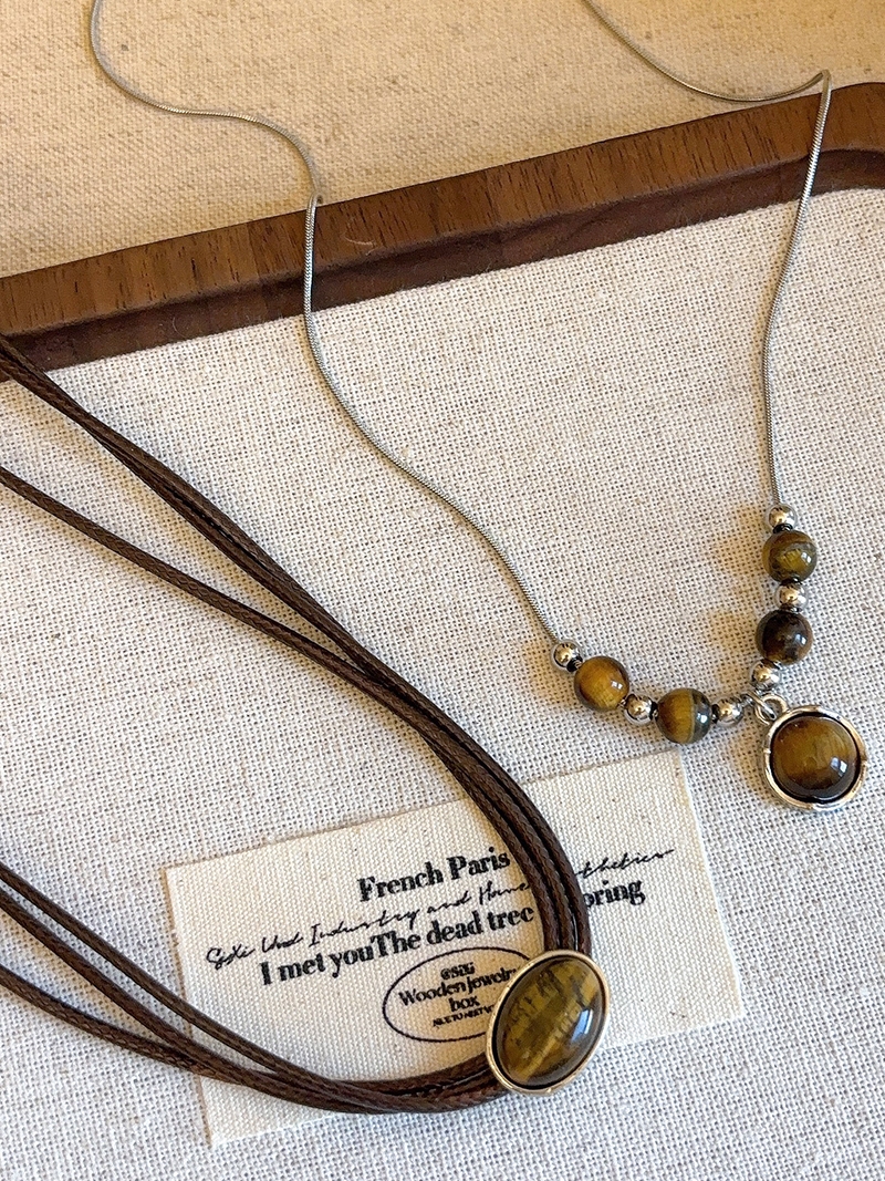 💎 天然虎眼石光澤,專屬你的鎖骨高級閃耀。🌟 小眾中式設計,單戴疊搭皆百搭。✨ 復古民族風 × 時尚百搭,一條項鍊打造多種風格。💃 質感與個性並存,輕鬆點亮你的每一套穿搭。